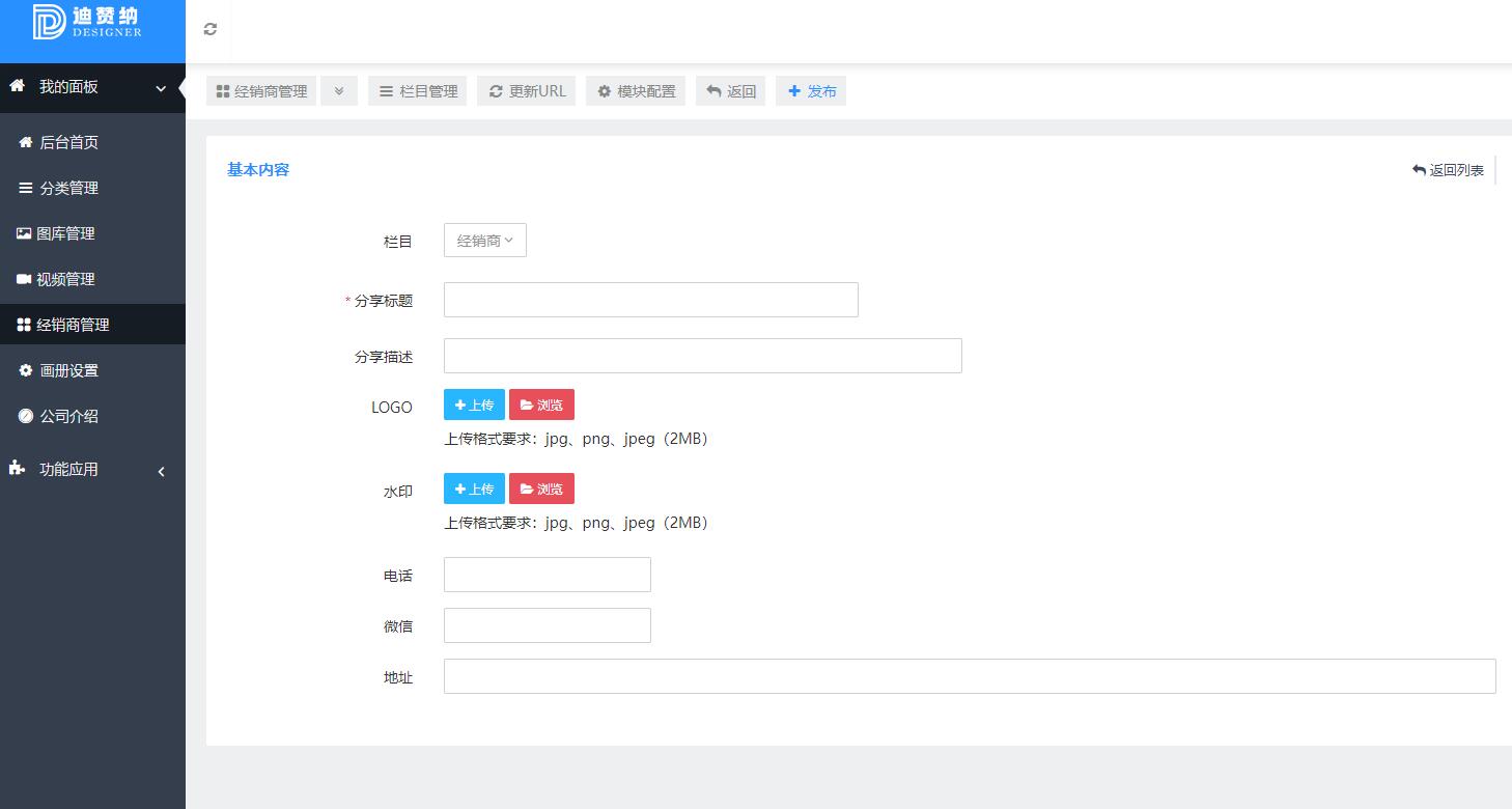 可以为公司的经销商或销售人员设置独立页面,方便他们对客户进行产品分享,页面不显示总公司信息,显示经销商信息